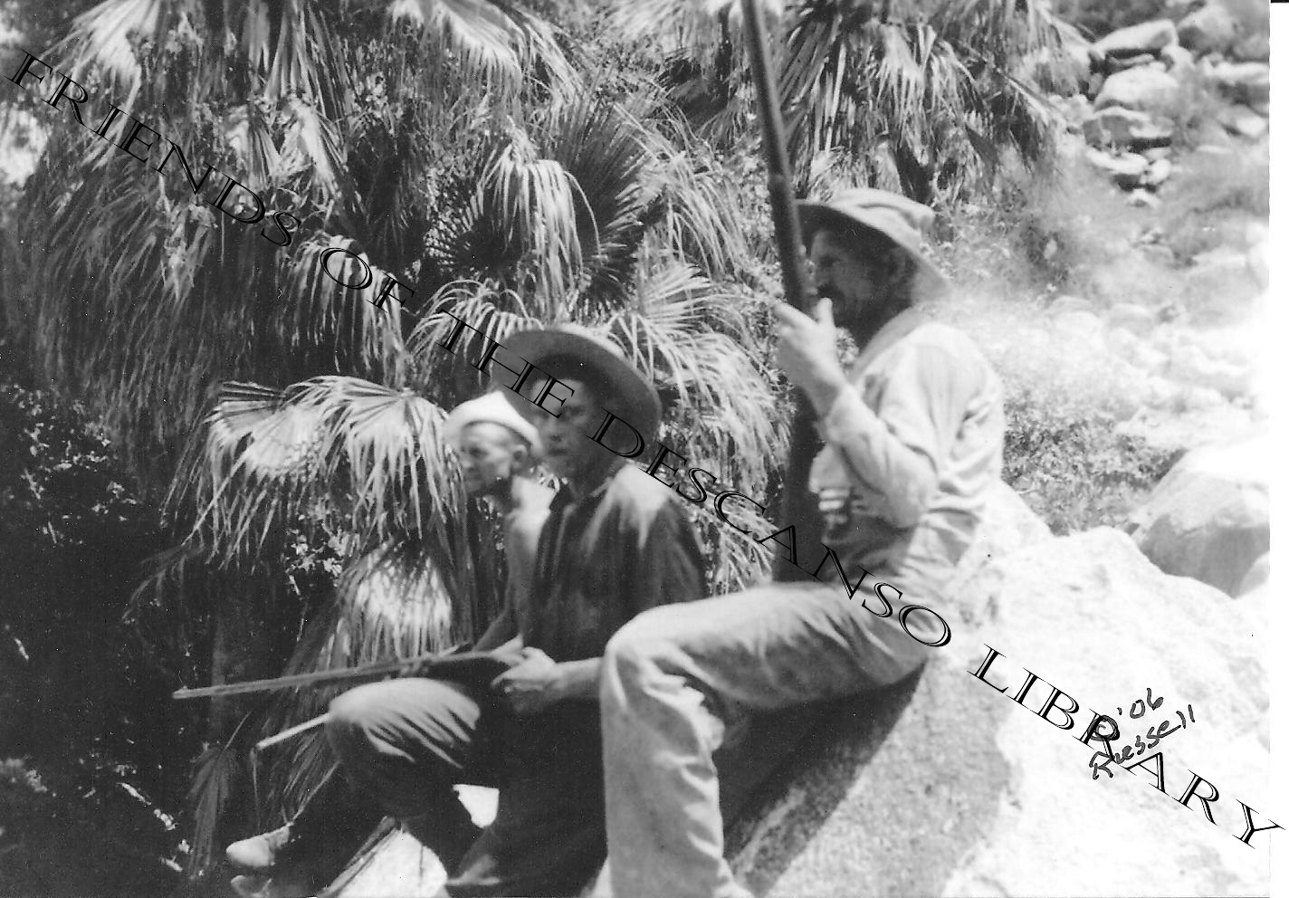 Lion Hunting in 'Hell Hole' canyon, south of Palm Canyon in what will later become the Anza Borrego State Park, 1918. The hunt was unsuccessful!