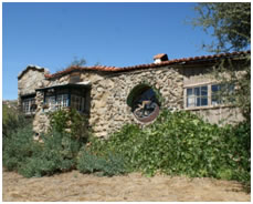 Descanso Park Cabin, 1926. Built by Peter Jacobs on Viejas Blvd. This A-frame rock cabin originally consisted of one room and a loft. It features a large