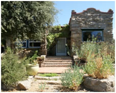 Descanso Rock Cabin Rental, 1929. Built by Peter Jacobs in Descanso Park. This Craftsman style dwelling is owned and rented out by S. Arthurs (2013). Faced with garnet-embedded local rock and a heart-shaped rock below the mantel (a trademark of Jacobs cabins), it is an historic landmark.