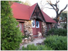 oak log above the front doors and  diamond pane windows. The homeowners have maintained the